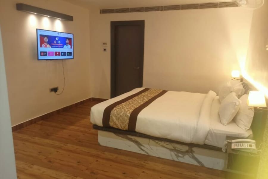 The Deluxe Room at Hotel Golden Leaf Ranchi is designed to offer a heightened level of comfort and sophistication, ideal for guests seeking a luxurious yet affordable stay. With elegant interiors, tasteful furnishings, and a spacious layout, the room creates a serene and stylish atmosphere. It features a plush king-size bed, ambient lighting, and large windows that allow natural light to pour in, enhancing the room's warm and inviting vibe. Modern amenities such as air conditioning, a flat-screen TV, high-speed Wi-Fi, and a mini-fridge ensure a convenient and enjoyable experience.
